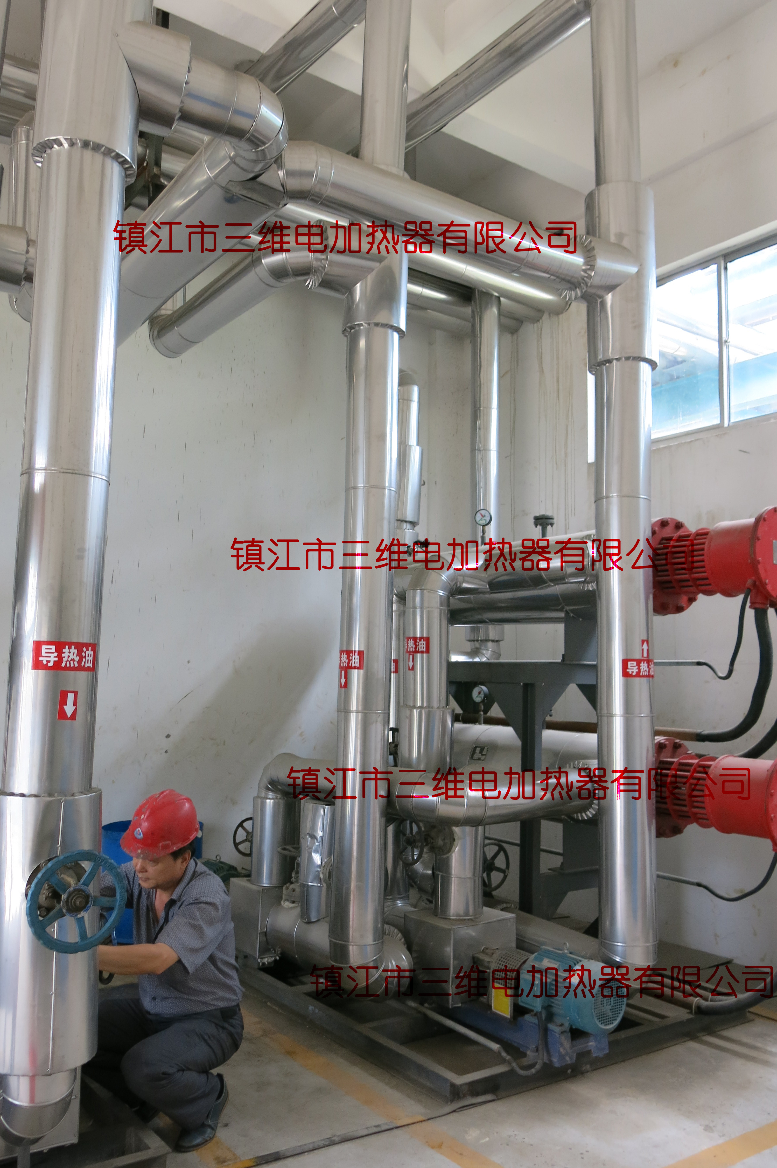 三維電熱消息 電加熱導熱油爐在石油及化學工業主要用于聚合、縮合、蒸餾、熔融、脫水、強制保溫。本文主要通過圖片展示某化工廠用電加熱導熱油爐使用現場。